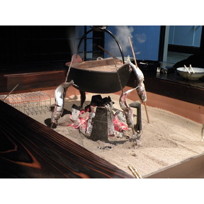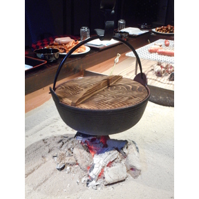 自在鍵に吊るされた南部鉄鍋。やさしい炭火が、ご家族の皆さんのきずなを一層深めてくれること、うけあいです。時節柄、あったかい鍋ものはいいですよね。 う~ん いいなぁ。なんたって、おとうふは庶民的な食材...